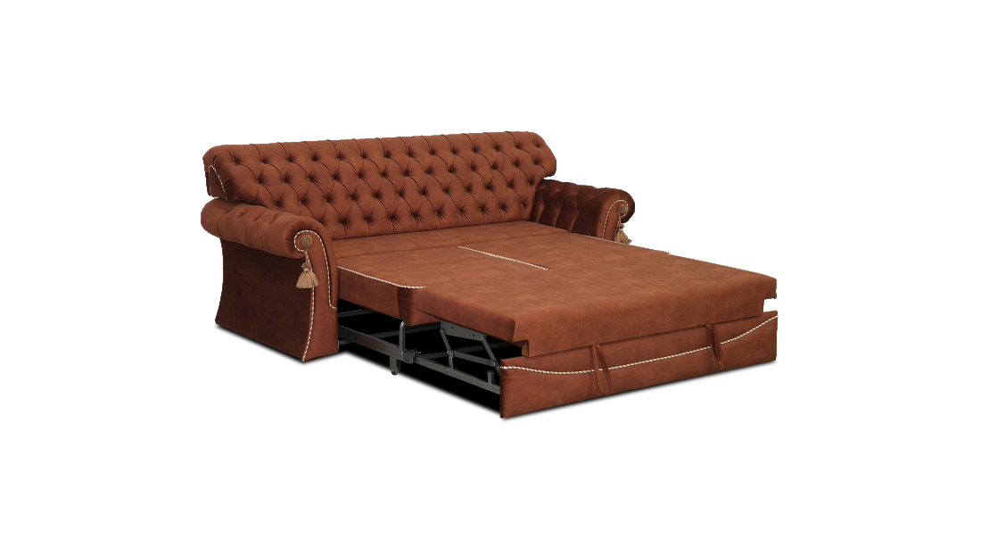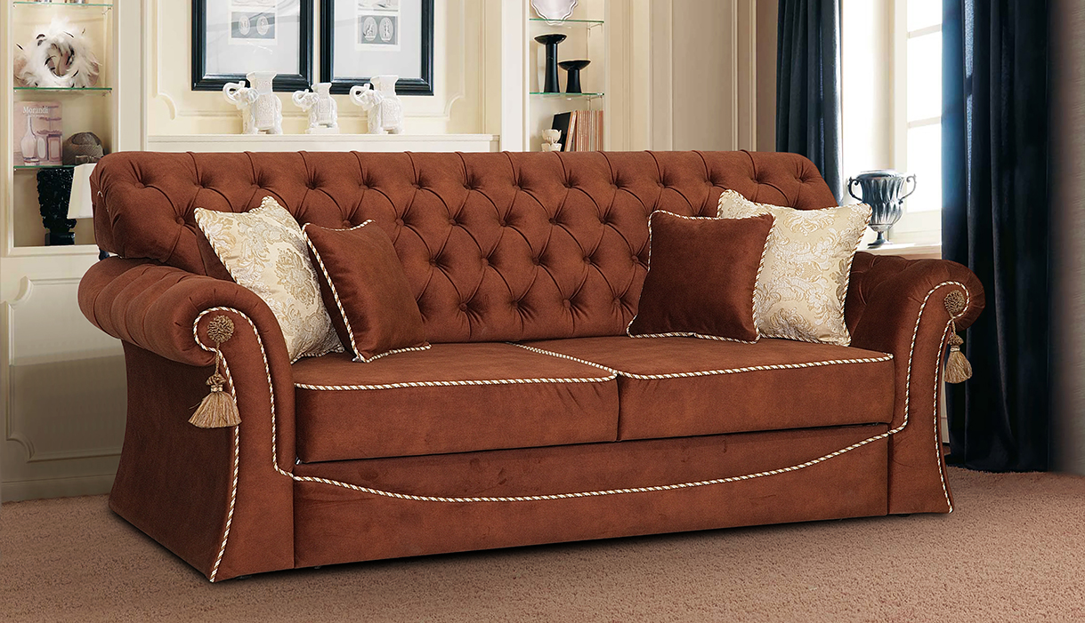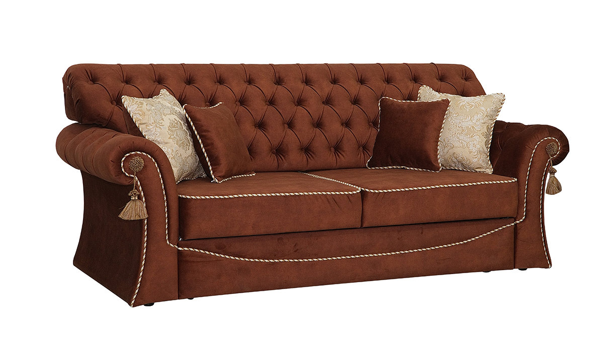 Орхидея классический диван с каретной стяжкой, который никогда не выйдет из моды. Присутствие такого дивана в интерьере говорит о благополучии и изысканном вкусе хозяев. Качественный диван с каретной стяжкой требует кропотливого ручного труда специалиста, но результат стоит потраченных усилий. При всем внешнем лоске диван Орхидея может похвастаться и возможностью утилитарного применения – диван оборудован наиболее удобным и востребованным на сегодняшний день механизмом трансформации ТТ (тройной телескоп).