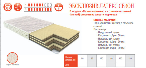МАТРАС ЭКСКЛЮЗИВ ЛАТЕКС СЕЗОН
