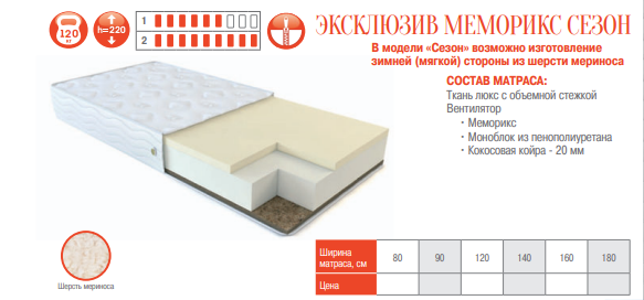 МАТРАС ЭКСКЛЮЗИВ МЕМОРИКС СЕЗОН