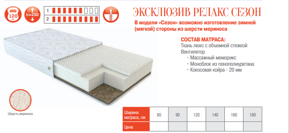 МАТРАС ЭКСКЛЮЗИВ РЕЛАКС СЕЗОН