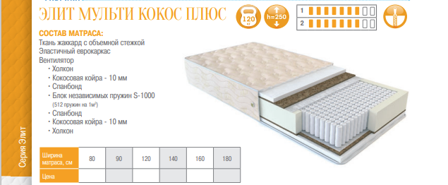 МАТРАС ЭЛИТ МУЛЬТИ КОКОС ПЛЮС