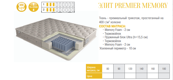 МАТРАС ЭЛИТ PREMIER MEMORI В ТКАНИ ЖАККАРД
