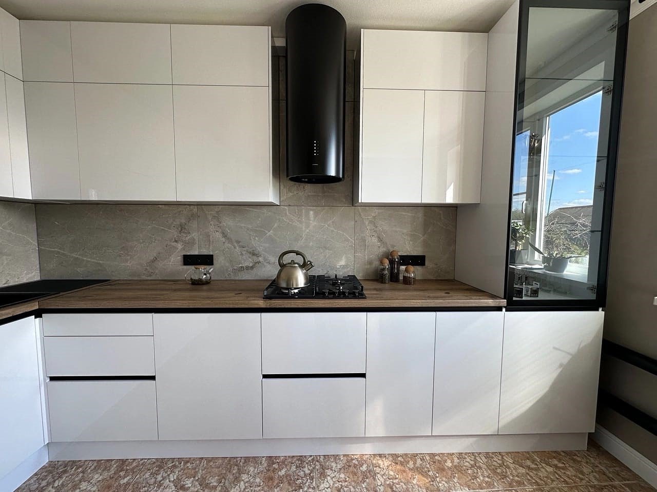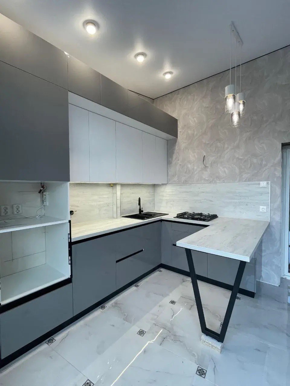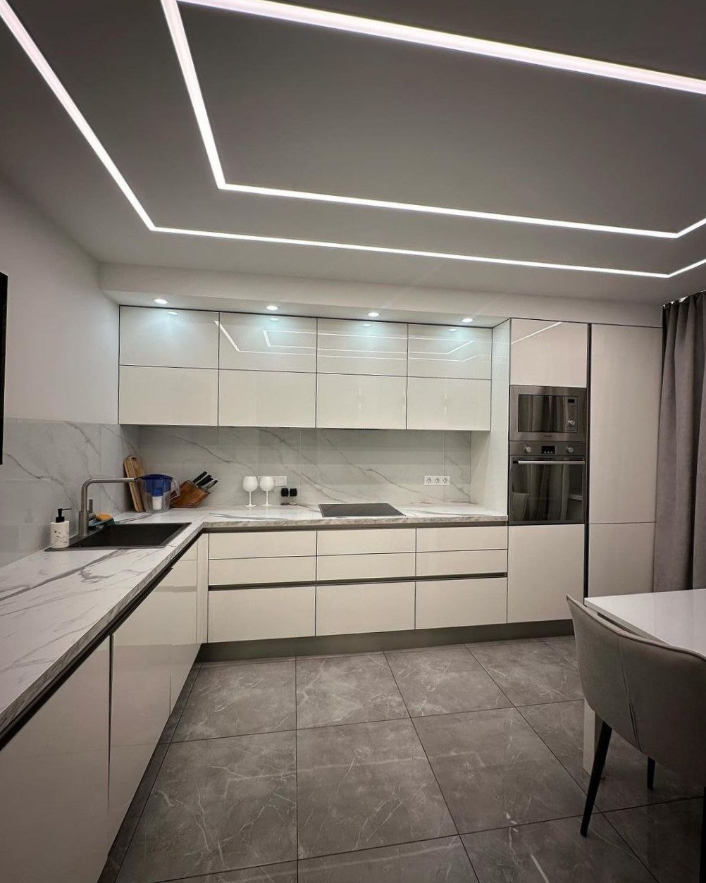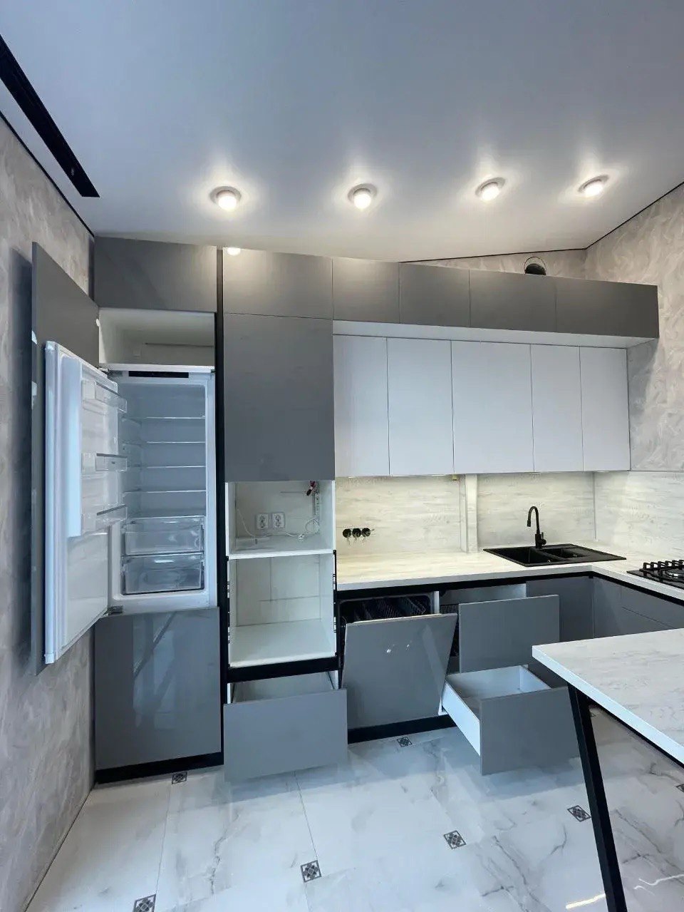 Кухня «Аттика» - это акриловые фасады (пластик)с глянцевым блеском придают кухне лоск и визуально расширяют пространство независимо от того, в каких тонах оформляется интерьер, – светлых или темных. Фасады «ACRYLIT», отделанные термостойким пластиком, выглядят очень элегантно и стильно. Преимущества фасадов «ACRYLIT»: cтойкость к образованию пятен, легкость в уходе, высокая степень глянца, зеркальный эффект, стойкость к образованию трещин, стойкость к выцветанию. В данной кухне есть как глянцевые фасады белого и серого цвета , так и матовые - белый, серый и приятный сливочный цвет )