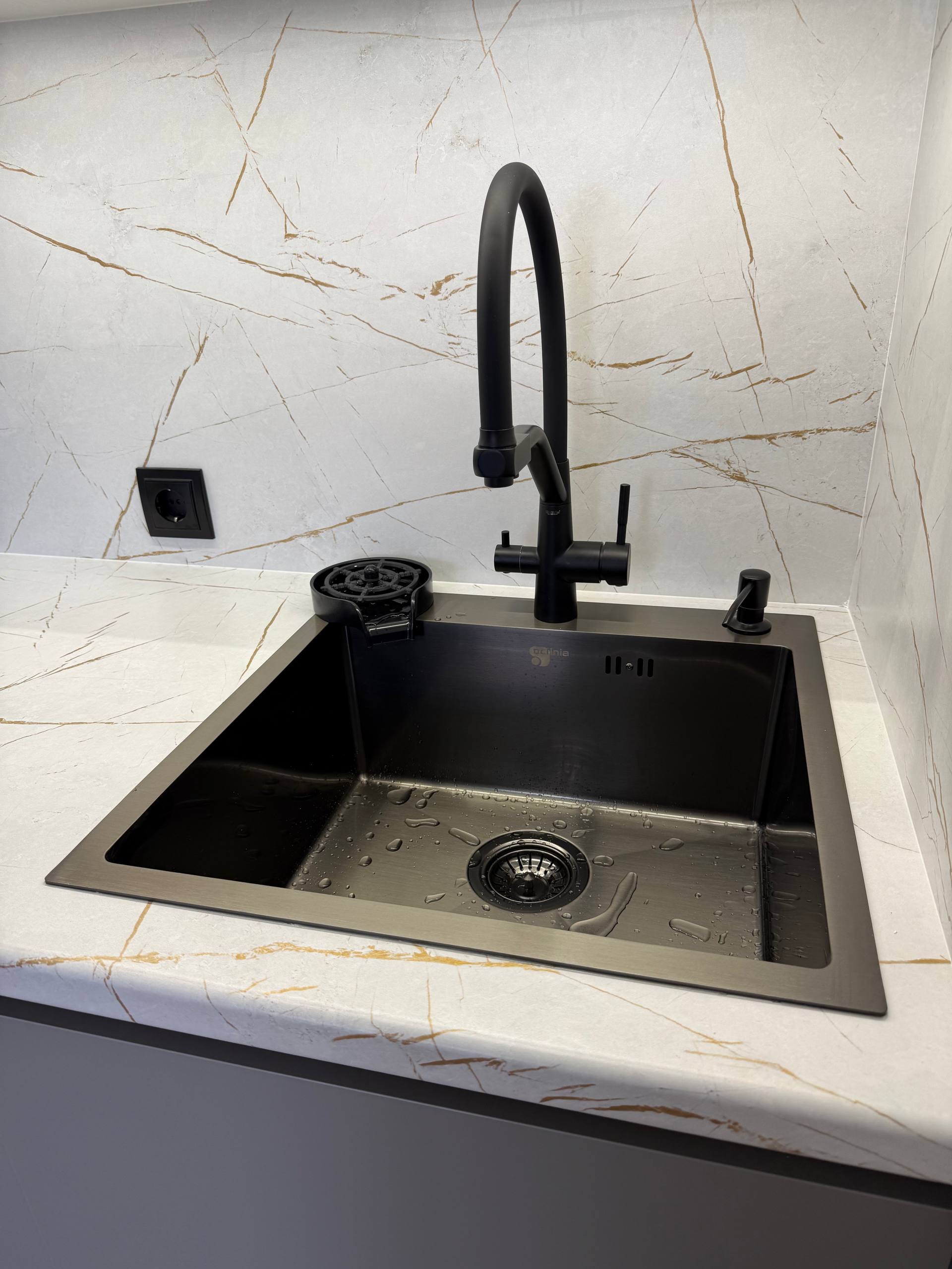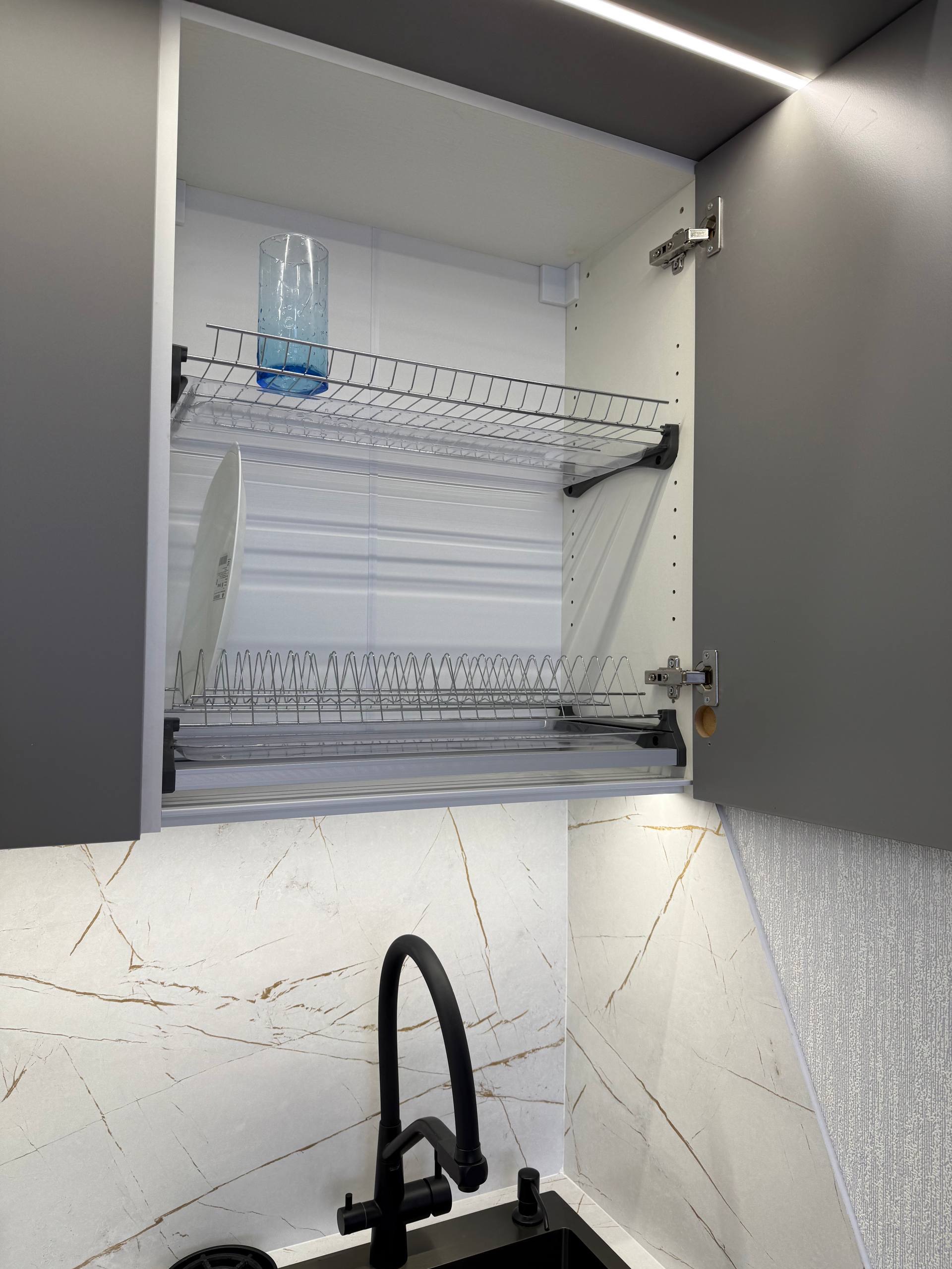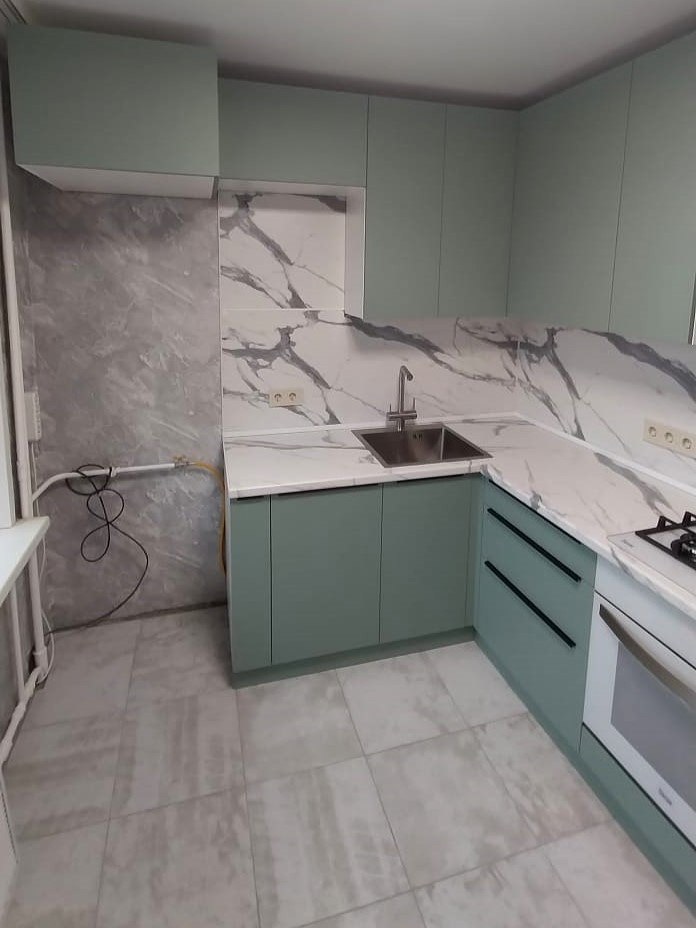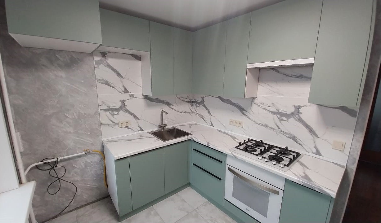Модульная кухня Аттика с пластиковым матовыми фасадами. Покрытие фасада кухонного гарнитура высококачественный многослойный пластик. Торцы дверей закрыты современной ПВХ кромкой. Верхние шкафы кухонного гарнитура Аттика матовый выпускаются высотой 720мм и 920мм. Современная кухня Аттика позволяет собрать гарнитур любой сложности. Можно сделать кухню прямую, угловую, П-образную. С островом или барной стойкой.