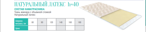 НАМАТРАСНИК НАТУРАЛЬНЫЙ ЛАТЕКС h=40мм.